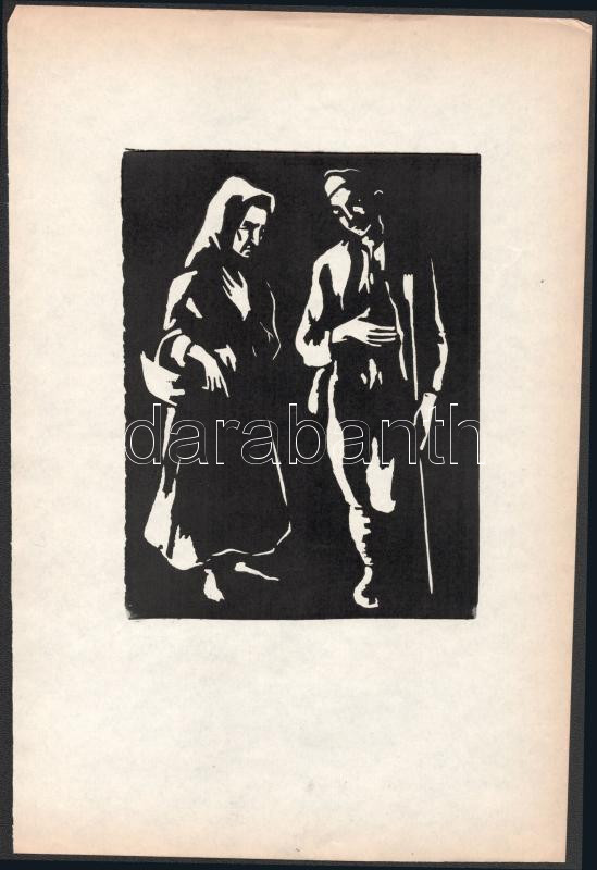 Leírás: Metykó Gyula (1907-1992): Páros. Linómetszet, papír, jelzés nélkül, lapszéli egészen apró szakadásokkal, 17×13 cm