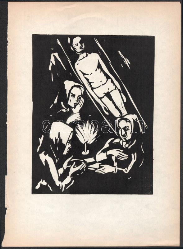 Leírás: Metykó Gyula (1907-1992): Siratók. Linómetszet, papír, jelzés nélkül, lapszéli apró sérülésekkel, 20×15,5 cm