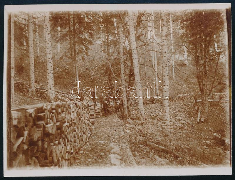 Leírás: 1911 Besztercebánya (Banská Bystrica), fakitermelés, fotó, 9x12 cm