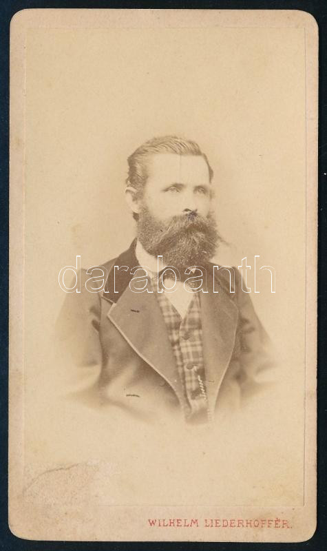 Leírás: cca 1870-1872 Keresztesi Szende Béla (1823-1882) politikus, honvédelmi miniszter (több kormányban (1872-1882, Szlávy, Bittó, Wenckheim, Tisza Kálmán) portréfotója, keményhátú fotó Liederhoffer Vilmos pesti műterméből, 10x6 cm