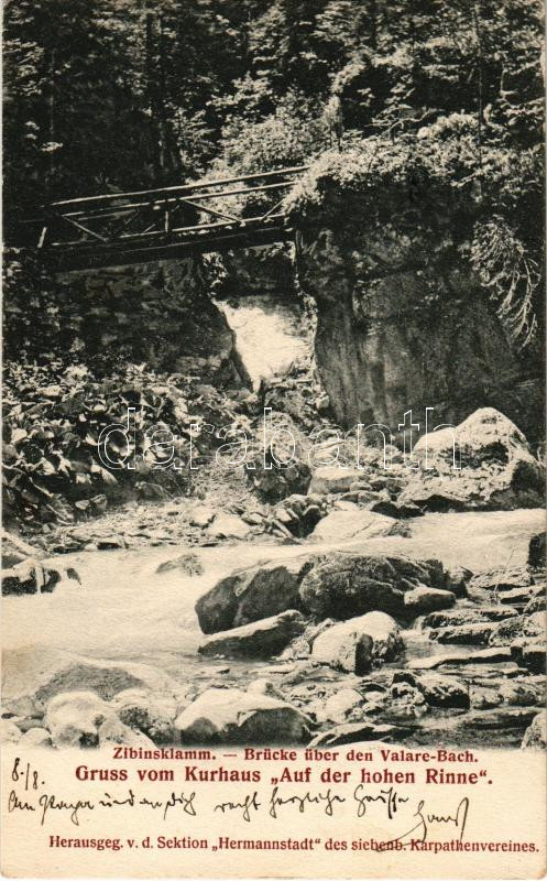 Leírás: 1907 Szebenjuharos, Hohe Rinne, Paltinis (Nagyszeben, Sibiu); Zibinsklamm, Brücke über den Valare Bach / völgy híd / valley bridge (EK)