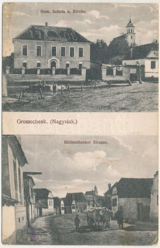 Nagysink, Gross-Schenk, Cincul Mare, Cincu; Rum. Schule und Kirche, Kl... https://www.darabanth.com/hu/517-Filatelia-kepeslap-numizmatika-mutargy-konyv-papirregiseg-ekszer-aukcio/522.0/Kepeslapok/Erdely~312/Nagysink-Gross-Schenk-Cincul-Mare-Cincu-Rum-Schule-und-Kirche-Kleinschenker-Strasse-W~II3507092