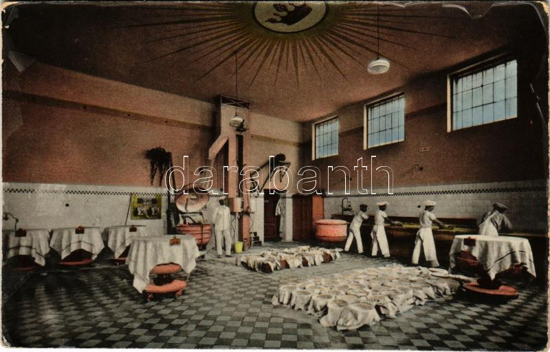 Leírás: Szentes, Első Szentesi Kenyérgyár mukaterme, belső pékekkel. Untermüller Ernő kiadása (EK)