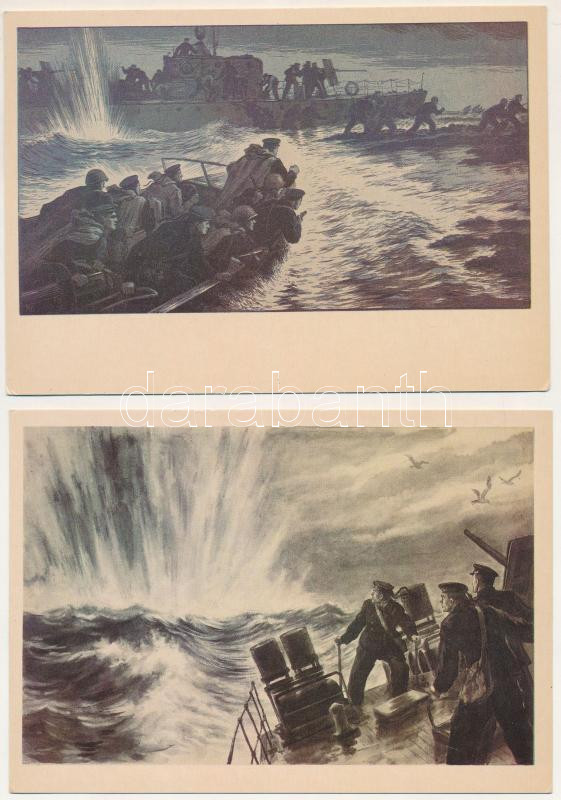 Leírás: 14 db MODERN szovjet 1941-45 közötti háborús historizáló művészlap / 14 modern Soviet military art postcards