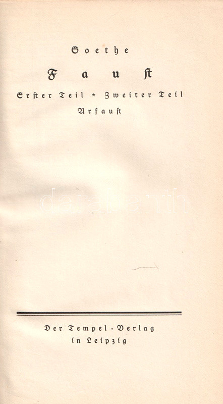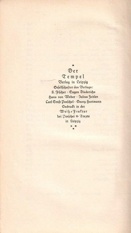 Bőrkötésű luxus-kiadásváltozat. Der Tempel néven alapította közös vállalkozását a berlini S. Fischer és a müncheni Eugen Diederichs kiadó. Az együtt tulajdonolt kiadói imprint, a Der Tempel küldetése a német klasszikusok bibliofil kiállítású közlése volt. Az első előzéken Ex libris.
