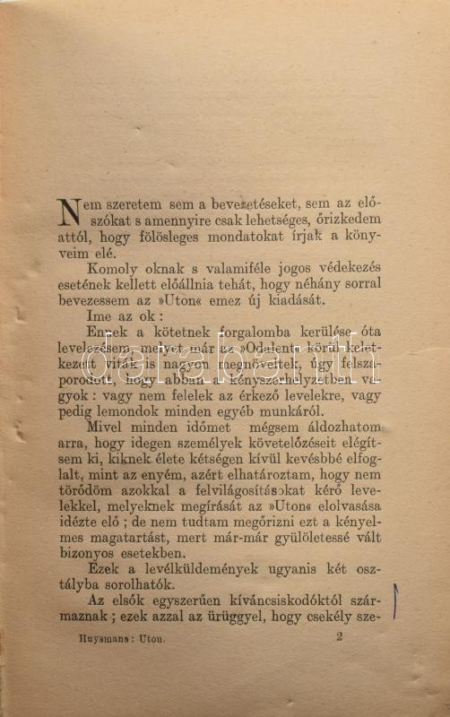 Leírás: Joris-Karl Huysmans: Úton. Ford.: Várkonyi Nándor. Híres Könyvek. Bp.,[1925.],Athenaeum, 464 p. Kiadói aranyozott egészvászon-kötés, kopott borítóval, a könyvben több helyen (kb. 10-11) bejegyzésekkel, lapszéli, szöveget nem érintő szakadásokkal (15-24 p.)