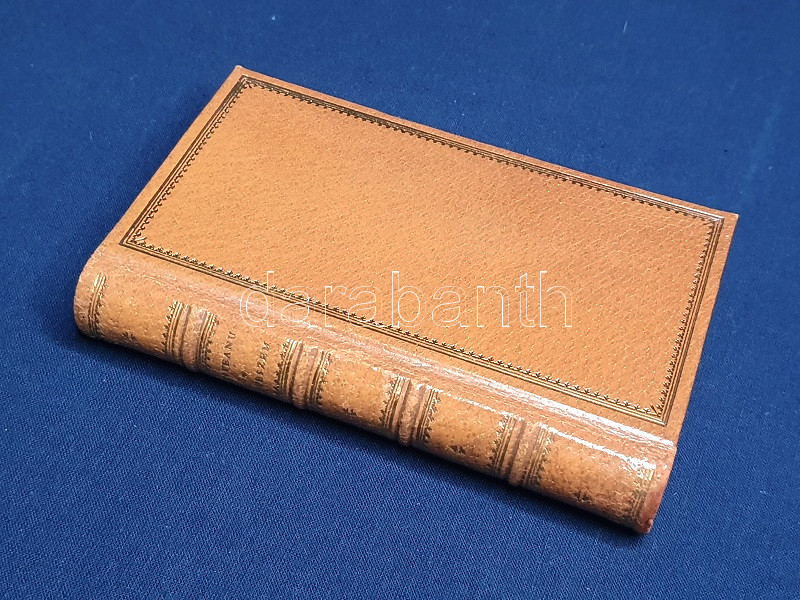 Aranyozott, álbordás kiadói bőrkötésben, felül színes festésű lapszélekkel. Szép példány.