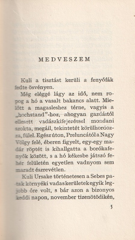 Medveszem. Öt elbeszélés. Fordította és az utószót írta Domokos János. (Számozott.)