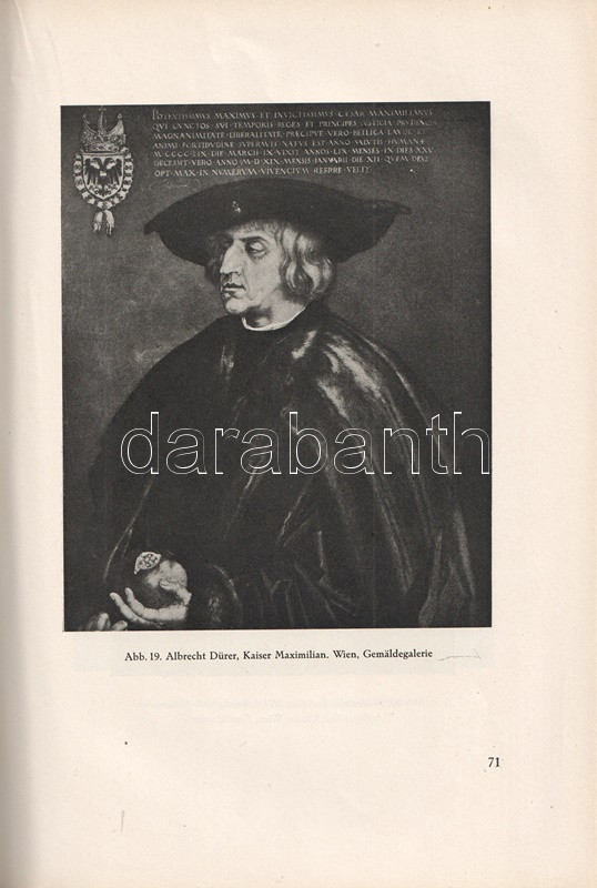 Ludwig Baldass (1887-1963) osztrák művészettörténész, egyetemi tanár kismonográfiája a mecénásként is számottevő német-római császár, az 1486-1519 között regnáló I. Miksa udvarában alkotó késő gótikus és reneszánsz képzőművészek munkásságát elemzi. Miksa császár köreinek kiemelkedő művésze Albrecht Dürer, gazdagon illusztrált albumunk igazán gazdag válogatást mutat be tőle, illetve a bécsi udvar más grafikusaitól, festő- és szobrászművészeitől.
