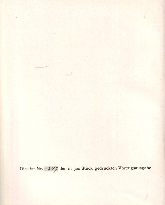 Összesen 300 példányban készült bibliofil képzőművészeti kötet számozott példánya. Kolofon: "Dies ist Nr. 247 der in 300 Stück gedruckten Vorzugsausgabe".