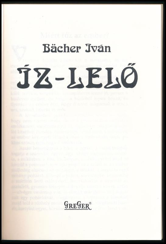 Bächer Iván: Íz-lelő. Bp., 1993, GreGer. Kiadói papírkötés. https://www.darabanth.com/hu/517-Filatelia-kepeslap-numizmatika-mutargy-konyv-papirregiseg-ekszer-aukcio/522.0/Konyvek/Konyvek-Idegen-nyelvu-konyvek~153/Bacher-Ivan-Iz-lelo-Bp-1993-GreGer-Kiadoi-papirkotes~II3507722