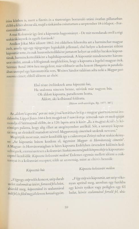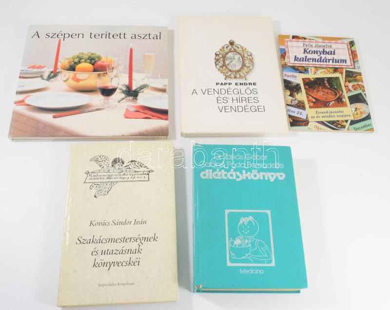 4 szakácskönyv és étkezéssel kapcsolatos: Zajkás-Póda: Diétáskönyv, Kovács Sándor: Szakács mesterségnek és utazásnak könyvecskéi, Pelle Józsefné Konhyai kalendárium, Papp Endre: A vendéglős híres vendégei. A szépen terített asztal.
