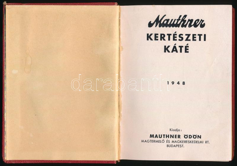 Mauthner Ödön: Mauthner kertészeti káté 1948. Strauss Pál iparművész rajzaival. Bp., 1948, Mauthner Ödön Magtermelő és Magkereskedelmi Rt., 160 p. Kiadói egészvászon-kötés. (Ritka!)