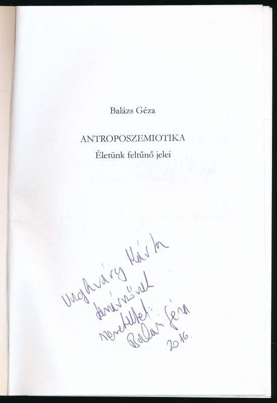 Balázs Géza: Antroposzemiotika. Életünk feltűnő jelei. DEDIKÁLT! Magya... https://www.darabanth.com/hu/517-Filatelia-kepeslap-numizmatika-mutargy-konyv-papirregiseg-ekszer-aukcio/522.0/Konyvek/Konyvek-Tarsadalomtudomany~148/Balazs-Geza-Antroposzemiotika-Eletunk-feltuno-jelei-DEDIKALT-Magyar-szemiotikai-tanulmanyok~II3506815