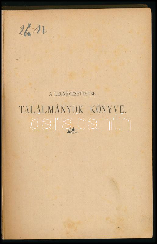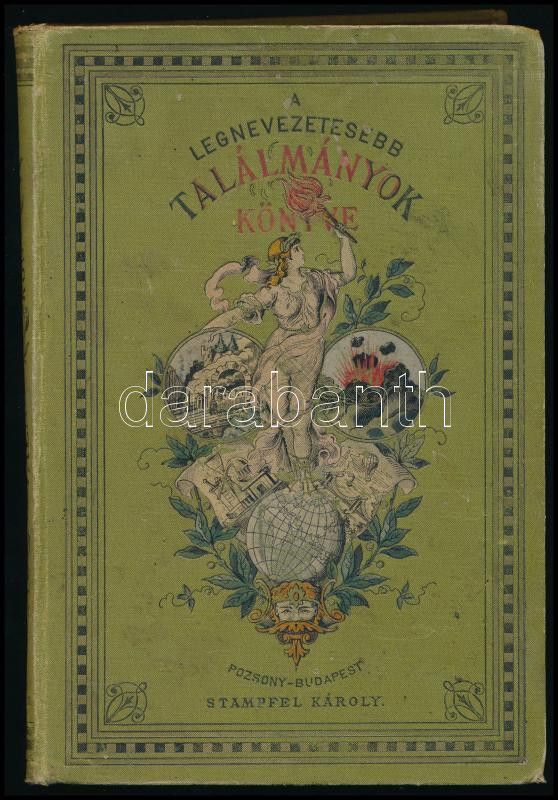 Thomas, [Louis] Lajos: A legnevezetesebb találmányok könyve. I. köt. A legnevezetesebb találmányok a XVIII. század végig. - - nyomán a mívelt magyar olvasó-közönségnek oktató olvasmányul nyúltja: Dr. Fésüs György. Pozsony-Bp., [1885], Stampfel Károly, XVI+255+[1] p. Szövegközti és egészoldalas illusztrációkkal. Kiadói aranyozott, festett, illusztrált egészvászon-kötés, kissé foltos, kopottas borítóval, helyenként foltos lapokkal.