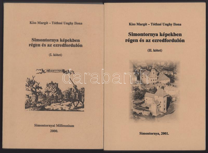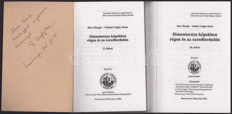 Kiss Margit - Tóthné Unghy Ilona: Simontornya képekben régen és az ezredfordulón. I-II. köt. Az I. kötet az egyik szerzÅ‘, Tóthné Unghy Ilona helytörténeti Ãró által dedikált! Sárbogárd, 2000-2001, Bogárd és Vidéke Nyomda és Lapkiadó. Egyetlen kiadás. Fekete-fehér képekkel illusztrálva. Kiadói papÃrkötés.
