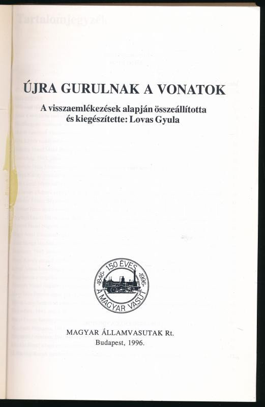Lovas Gyula: Újra gurulnak a vonatok. A visszaemlékezések alapján összeáll. és kiegészítette: - - . Vasúthistória könyvek. Bp., 1996, MÁV, 433+[3] p. Egyetlen kiadás. Kiadói papírkötés.