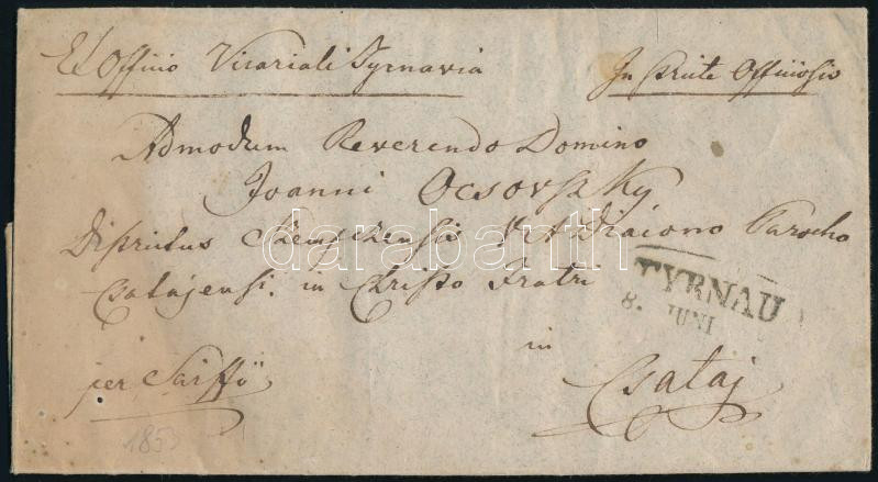 Leírás: 1853 Ex offo levél bérmentesítés nélkül, "TYRNAU" - Csataj