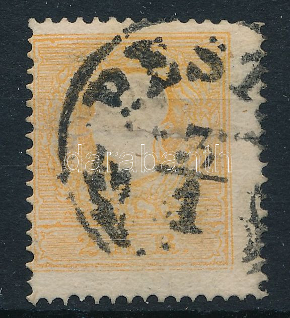 Leírás: 1858 2kr narancs látványos elfogazással "PESTH" (150.000) (tűhegynyi elvékonyodás / small thin)