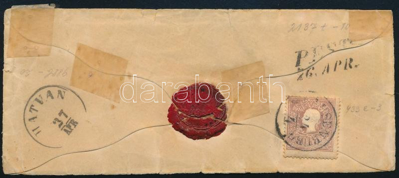 Leírás: 1858 Ajánlott levél 15kr II. típ. + hátoldalon 10kr II. . bélyeggel "KLAUSENBURG" - "HATVAN" - "PEST"