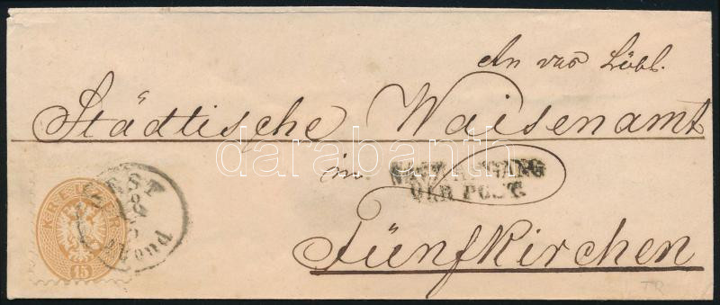 Leírás: 1864 15kr világosbarna levélen "PEST / Abend" - Fünfkirchen