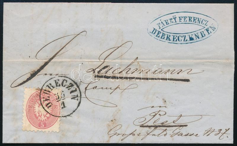 Leírás: 1866 5kr levélen "DEBRECZIN" - "PEST / Abend"