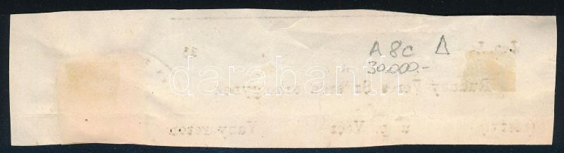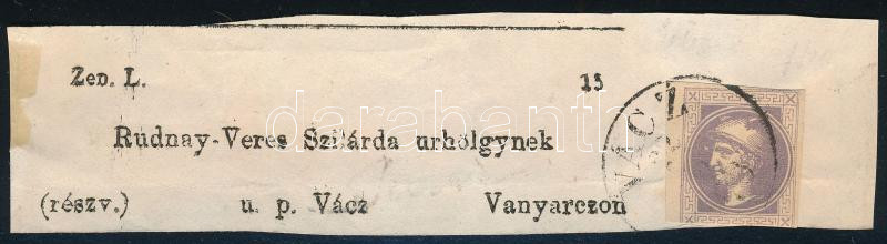 Leírás: 1867 Hírlapbélyeg (A8c) egy átkötőszalag előlapján, "VÁCZ", R! (30.000)
