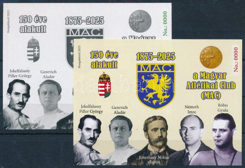 Leírás: 2025 150 éves a MAC Magyar Atlétikai Club emlékív pár azonos (No. 0000) sorszámmal