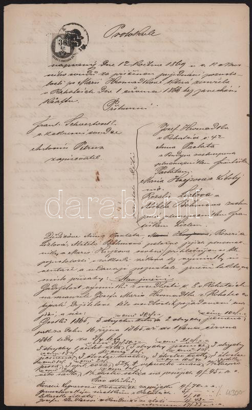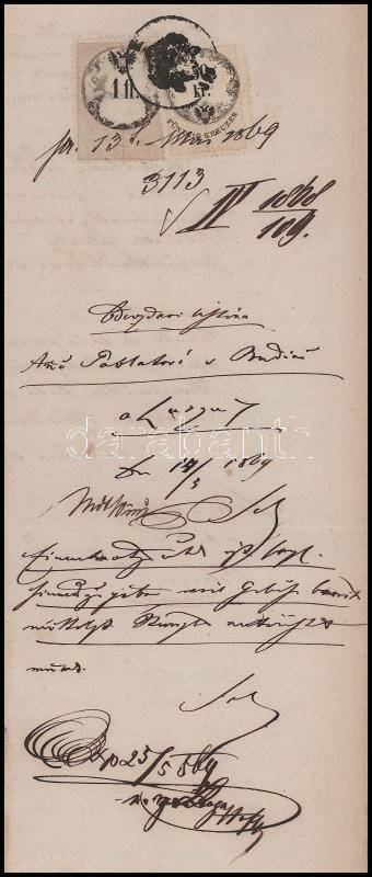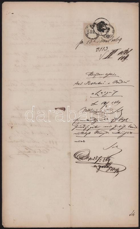 Leírás: 1868 Okmány 1858 1Fl + 50kr + 36kr illetékbélyeggel