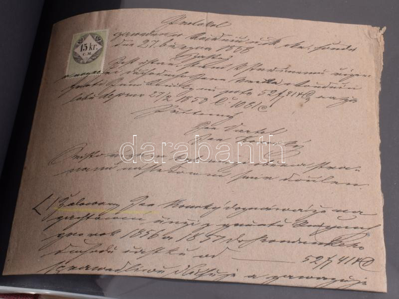ca 1850-1890 Osztrák-magyar okmánybélyeges okmány gyűjtemény, igényes ... https://www.darabanth.com/hu/517-Filatelia-kepeslap-numizmatika-mutargy-konyv-papirregiseg-ekszer-aukcio/522.0/Magyar-filatelia-es-postatortenet/Okmanybelyegek~96/ca-1850-1890-Osztrak-magyar-okmanybelyeges-okmany-gyujtemeny-igenyes-KA-Be-gyurus-berakoban-29~II3505514