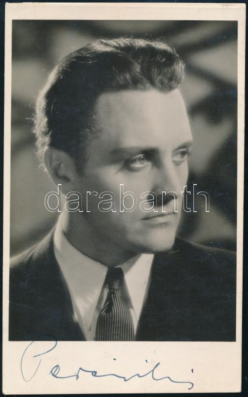 Leírás: Perényi László (1910-1993) színész saját kézzel aláírt fotólapja