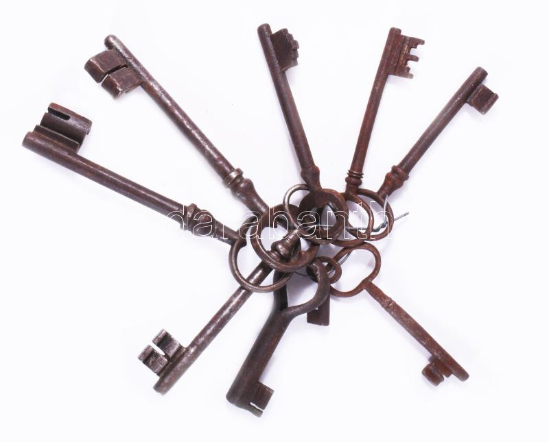 Leírás: 9 darab antik kulcs, 18-19.sz.