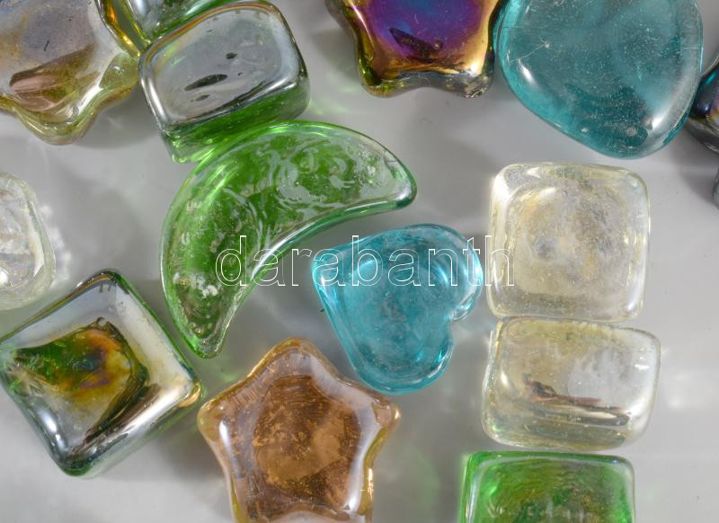 Leírás: Asztaldekor üvegek fém dobozban 3-4 cm 6 db