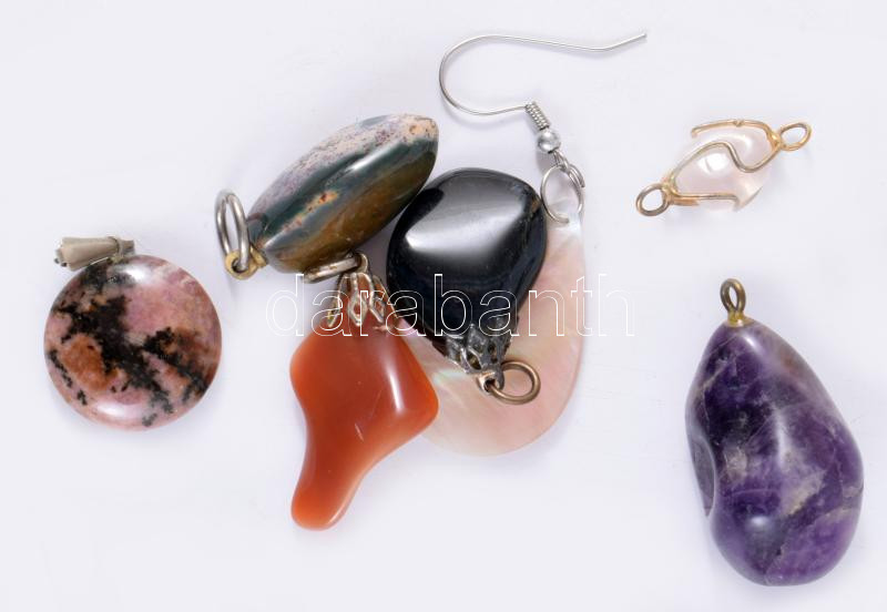 Leírás: Drágakövek, medálok, borostyán, faragott nyaklánc szemek.