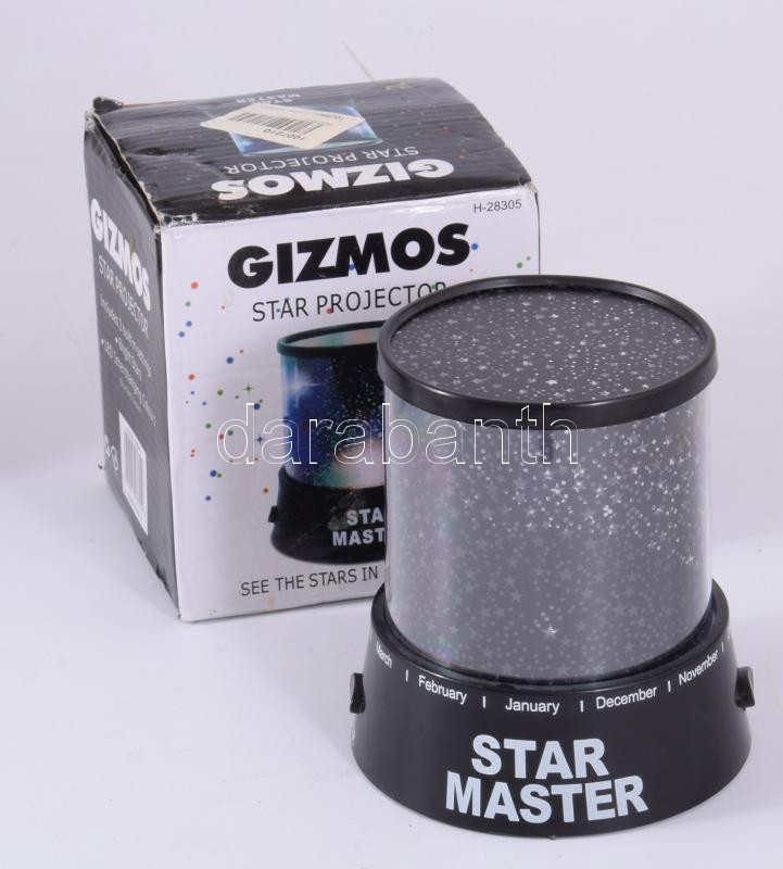 Leírás: Gizmos Star Projector elemmel működő világító asztaldísz, dobozában, m: 12 cm