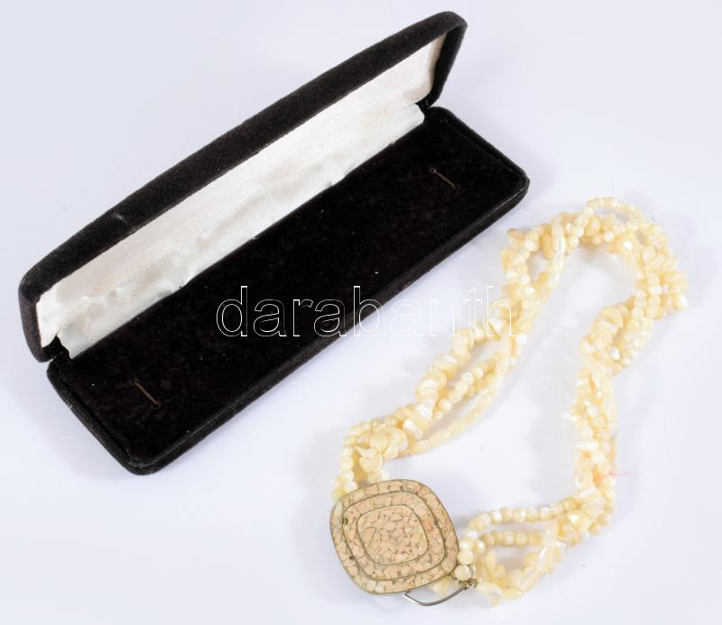 Háromsoros tenyésztett gyöngy nyaklánc medállal, dobozban https://www.darabanth.com/hu/517-Filatelia-kepeslap-numizmatika-mutargy-konyv-papirregiseg-ekszer-aukcio/522.0/Mutargy-papirregiseg-egyeb/Bolhapiac~92/Haromsoros-tenyesztett-gyongy-nyaklanc-medallal-dobozban~II3503917