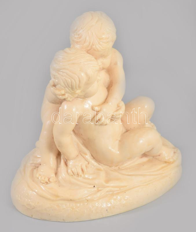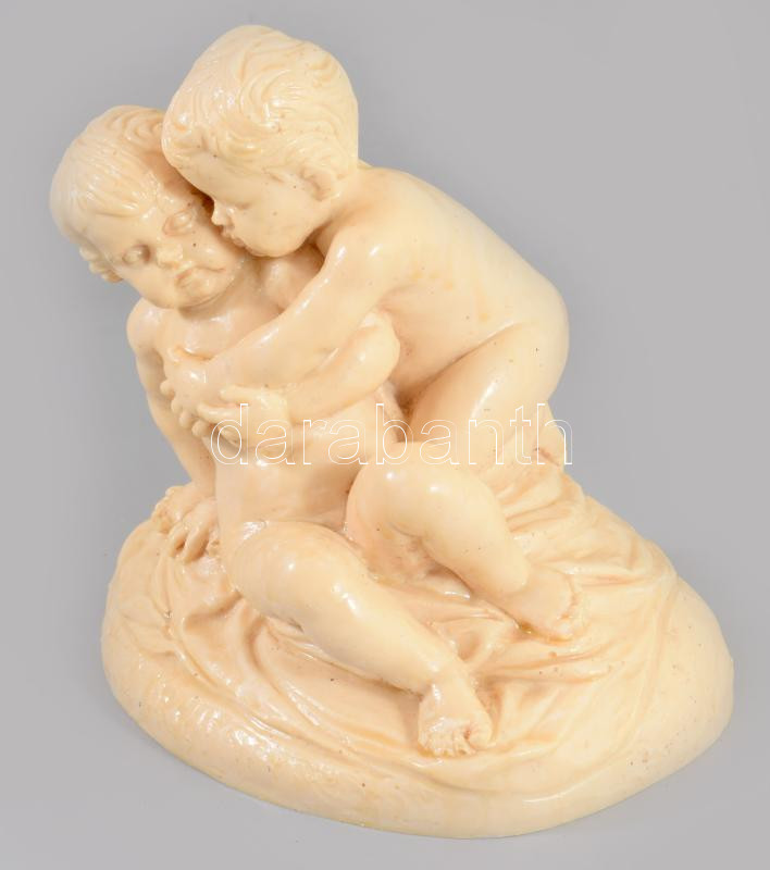 Leírás: Kerub lány és fiú, gipsz őrlemény, jelzett 18x19 cm