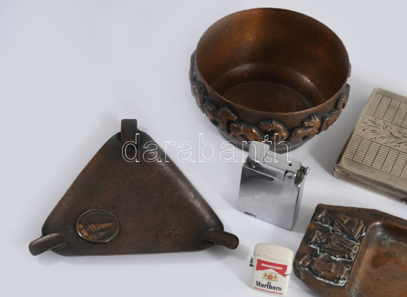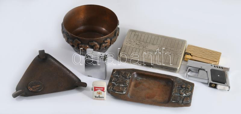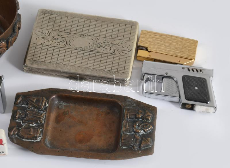Kis doboznyi dohányzó tétel: öngyújtók, hamuzók, tárca. https://www.darabanth.com/hu/517-Filatelia-kepeslap-numizmatika-mutargy-konyv-papirregiseg-ekszer-aukcio/522.0/Mutargy-papirregiseg-egyeb/Bolhapiac~92/Kis-doboznyi-dohanyzo-tetel-ongyujtok-hamuzok-tarca~II3505332