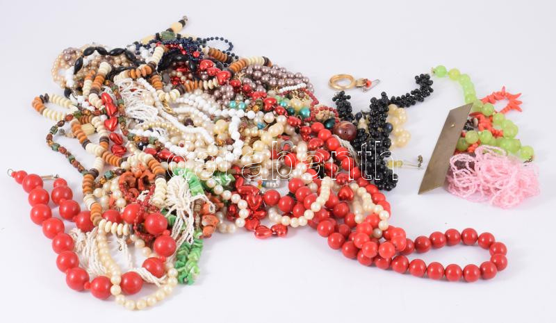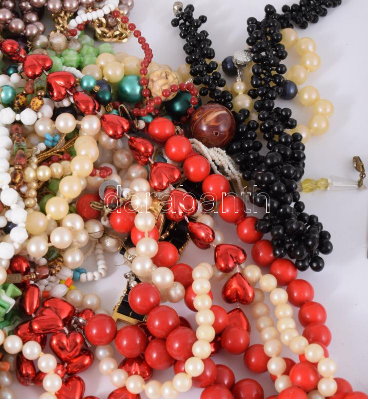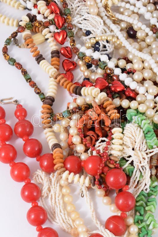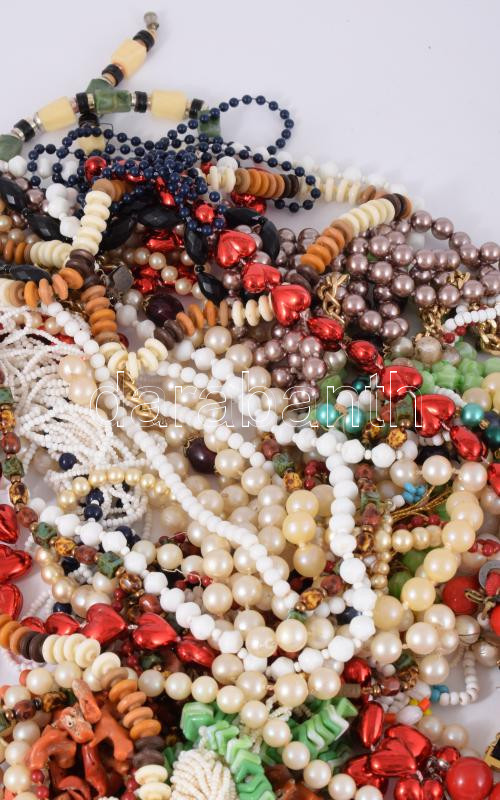 Leírás: Nagy doboznyi bizsu ékszer. érdekes darabokkal nagyrészt nyakláncok.