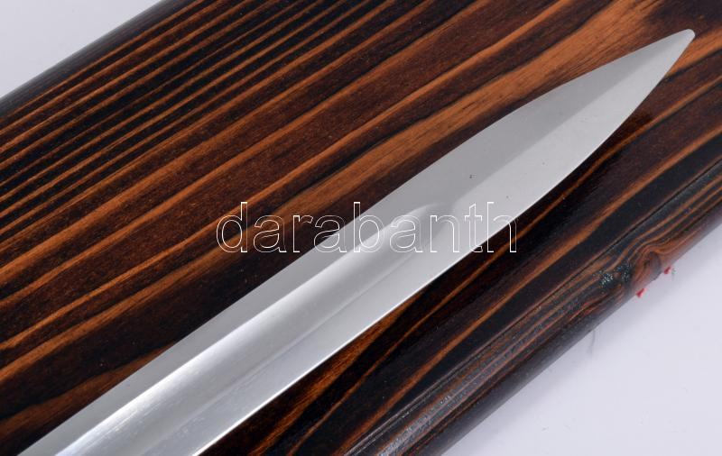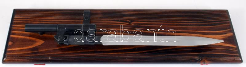 Leírás: Puska szurony, dekoratív fa lapra applikálva, 46x13 cm