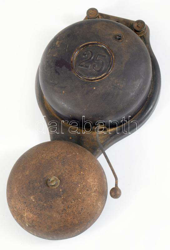 Régi bakelit és vas iskolacsengő, m: 18 cm https://www.darabanth.com/hu/517-Filatelia-kepeslap-numizmatika-mutargy-konyv-papirregiseg-ekszer-aukcio/522.0/Mutargy-papirregiseg-egyeb/Bolhapiac~92/Regi-bakelit-es-vas-iskolacsengo-m-18-cm~II3508427