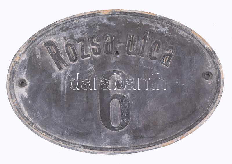 Rózsa utca 6 fém tábla, lyukkal, 19x29 cm https://www.darabanth.com/hu/517-Filatelia-kepeslap-numizmatika-mutargy-konyv-papirregiseg-ekszer-aukcio/522.0/Mutargy-papirregiseg-egyeb/Bolhapiac~92/Rozsa-utca-6-fem-tabla-lyukkal-19x29-cm~II3508408