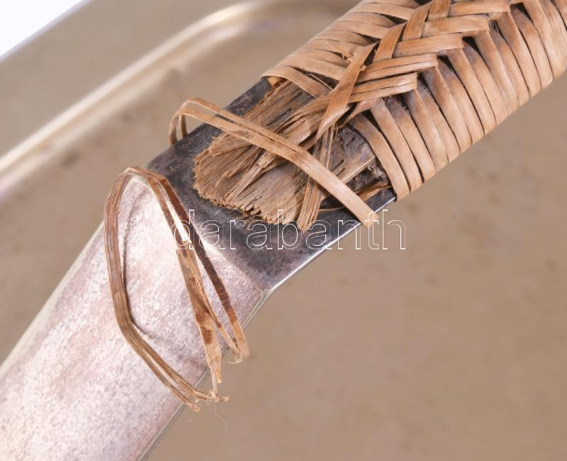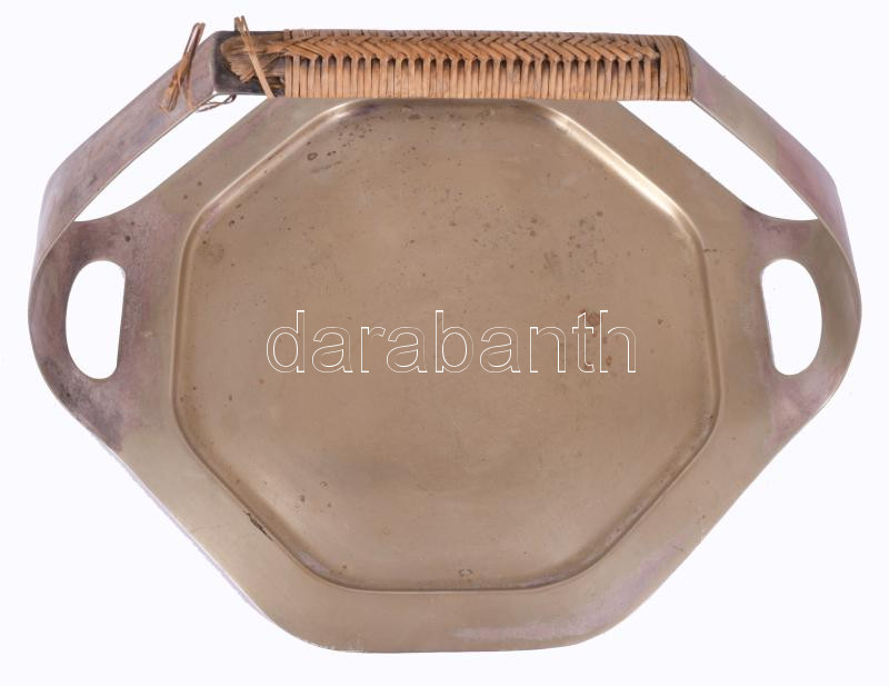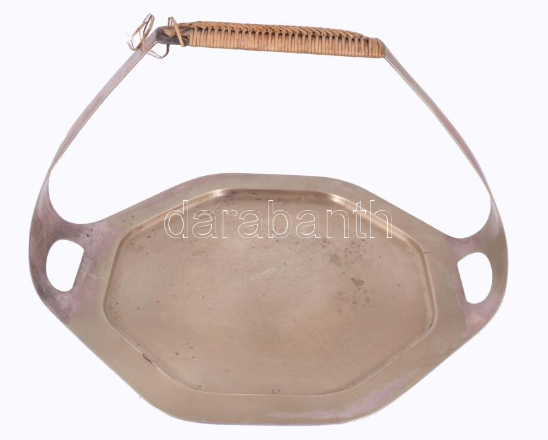 Leírás: Art deco alpakka kínálótálca fogóján sérüléssel, 36x22 cm