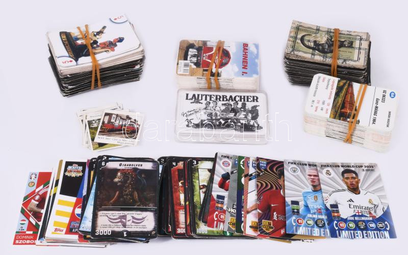 Vegyes kártya tétel: focis, vonatos, gyűjtögetős kártyák, stb. https://www.darabanth.com/hu/517-Filatelia-kepeslap-numizmatika-mutargy-konyv-papirregiseg-ekszer-aukcio/522.0/Mutargy-papirregiseg-egyeb/Jatekok~93/Vegyes-kartya-tetel-focis-vonatos-gyujtogetos-kartyak-stb~II3504590