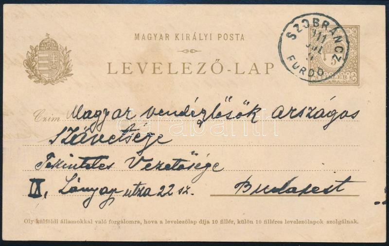 Leírás: 1911 Szobráncfürdő, eredetileg Fuchs Manó ungvári vendéglős levele a Magyar Vendéglősök Orsz. Szövetségének, hogy neve magyarosítása után, mint Füredi Manó működik tovább, levelezőlap, szép állapotban.