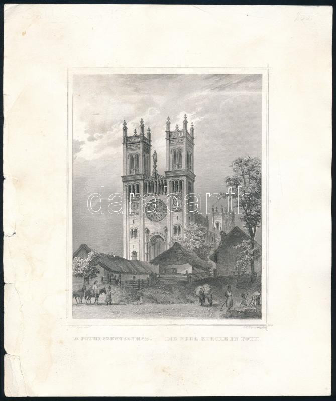 Leírás: Ludwig Rohbock (1820-1883) - Georg Michael Kurz (1815-1883): A fóti szentegyház (Die neue Kirche in Foth). Acélmetszet, papír, lapszéli sérülésekkel, kissé foltos, 23,5x19,5 cm