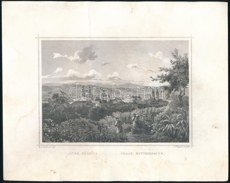 Leírás: Ludwig Rohbock (1820-1883) - Johann Poppel (1807-1882): Eger délről (Erlau, Mittagsseite). Acélmetszet, papír, kissé foltos, törésnyommal, 19,5x24,5 cm