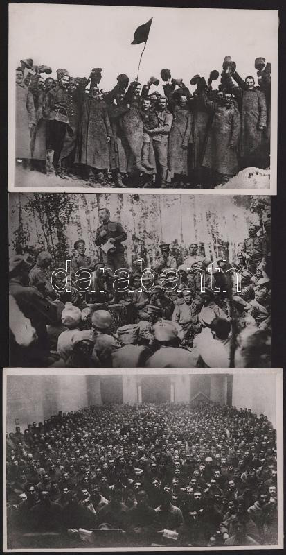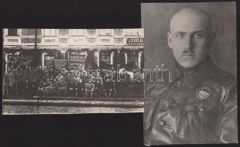 1916-1919 Vaszilij Blücher a Vörös hadsereg parancsnoka, szovjet bolsevikek a forradalom idején, szovjet katonai gyűlés a fronton, A Ruzhinsky zászlóalj gyűlése, 5 db fotó a szovjet forradalom és polgárháború idejéből későbbi nagyítások 18x12 cm