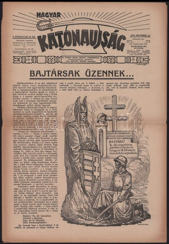 Magyar Katonaújság. Szerkeszti: Rózsás János. Megjelenik hetenként. V. évfolyam, 43. szám. (1942 10 24.) Jó állapotban
