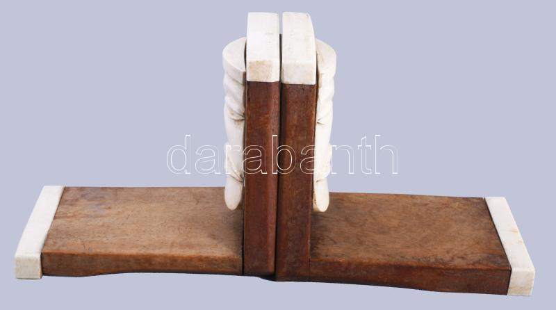Leírás: Art deco könyvtámasz pár, elefántcsont rárakásokkal, 15x14 cm